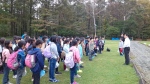 夜に降っていた雨が上がり、園庭で閉園式を行いました。お世話になった学園の方から、お褒めの言葉をいただきました。約束を守り、挨拶がしっかりできる5年生として自信をもって生活してくださいというお話でした。嬉しいですね。その後、心を込めてお礼を言い、名残惜しい富士学園をあとにしました。