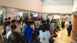 お昼ごはんも、班ごとのタイミングで食べています。大講堂、貸し切りです。