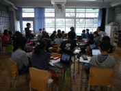 1月25日は土曜授業「ICT公開」でした。多くの保護者・地域の皆様に授業をご覧いただき、ありがとうございました。9月から本校に160台のタブレットPCが導入されました。タブレットPCを活用した授業をご覧いただけましたでしょうか。左の写真は5年2組の道徳「おくれてきた客」での様子です。タブレットPCに自分の考えを書いて提出すると、クラス全員と共有することができます。お互いの考えを共有しながら、活発な議論が繰り広げられていました。右の写真は2年2組の学級活動「学級会をしよう」の様子です。一人一人が「どんな3年生になりたいか」をタブレットPCに書き込んでいるところです。ICTを使うことが目的ではありません。より主体的・対話的に学ぶために有効に活用できるよう、学校全体でさらなるICT活用に取り組んでいきます。