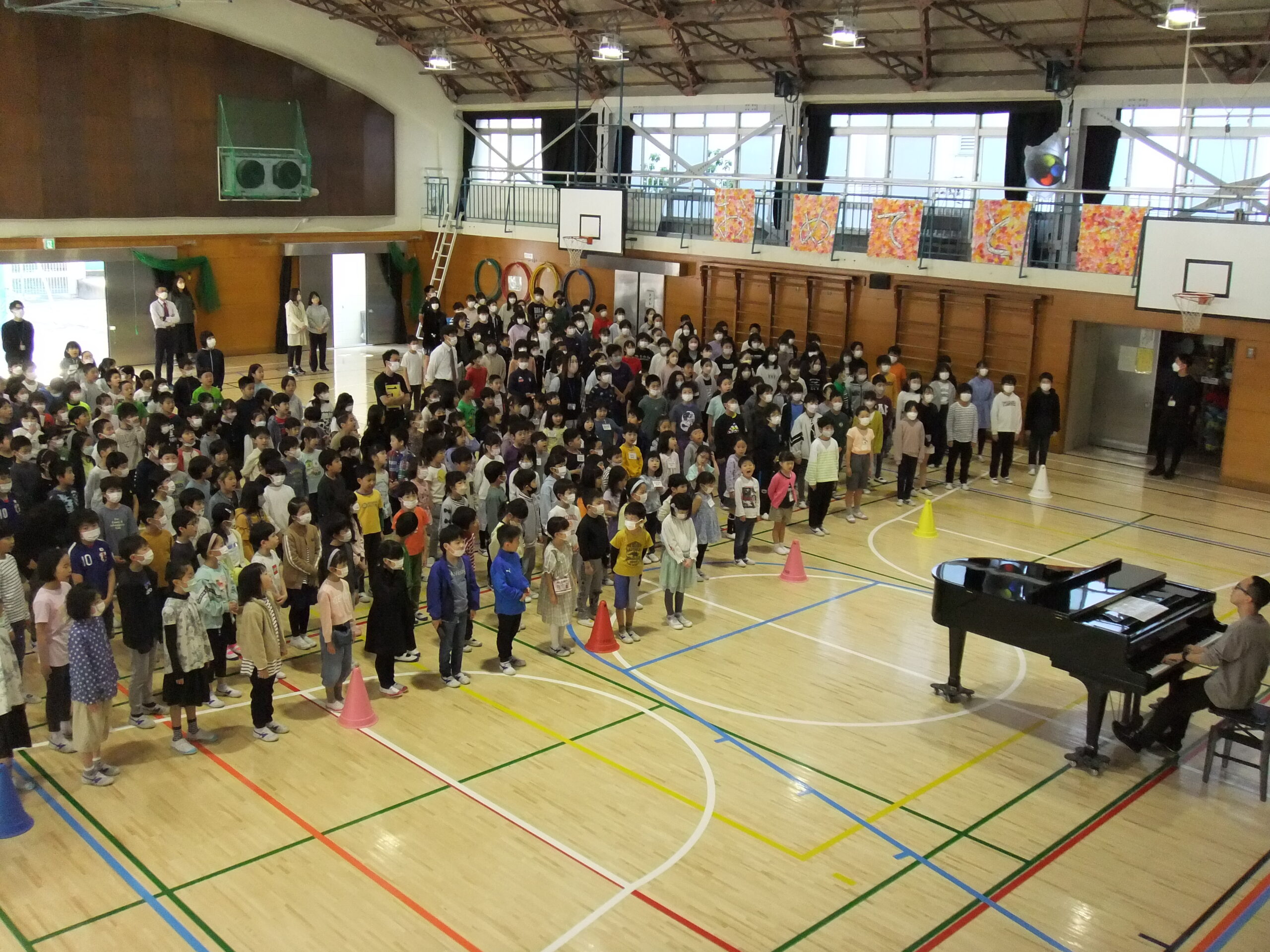 音楽朝会 2023年5月29日 最終更新日時 : 2023年5月29日 ongaku 4月27日(木)に音楽朝会がありました。体育館に全校児童が集まって歌ったのは4年ぶりでした。杉一小のみんなのすてきな歌声が体育館いっぱいに響きました。
