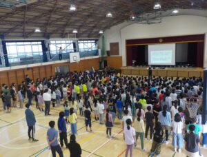 お昼休みに1年生から6年生がたてわり班に分かれて、一緒に遊びました。屋上では、どろけい・だるまさんがころんだ、校庭では、ドッヂボールを楽しみました。 6年生が事前に計画を立て、全学年に優しく声をかけながらスムーズに進 […]