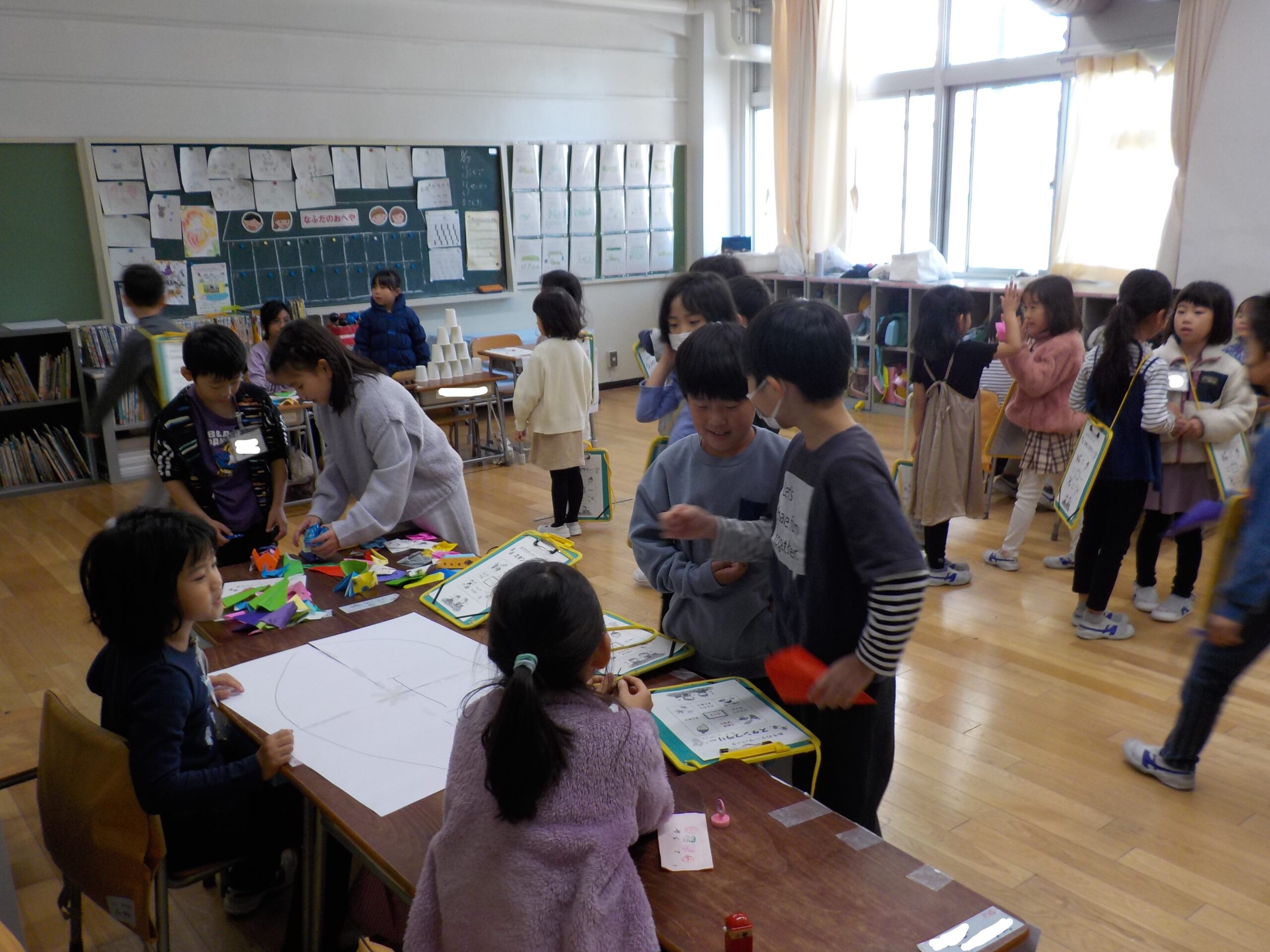 生活科「あきの、テーマパーク」 2023年11月27日 最終更新日時 : 2023年11月27日 寺岡 11月27日月曜日3、4時間目の生活科の時間に、「あきのテーマパーク」を行いました。10月の生活科見学で野川公園に秋探しに行き、拾ってきたどんぐりなどを使ったお店を考え、2年生を招待してみんなで楽しみました。 DSCN6923 DSCN6932