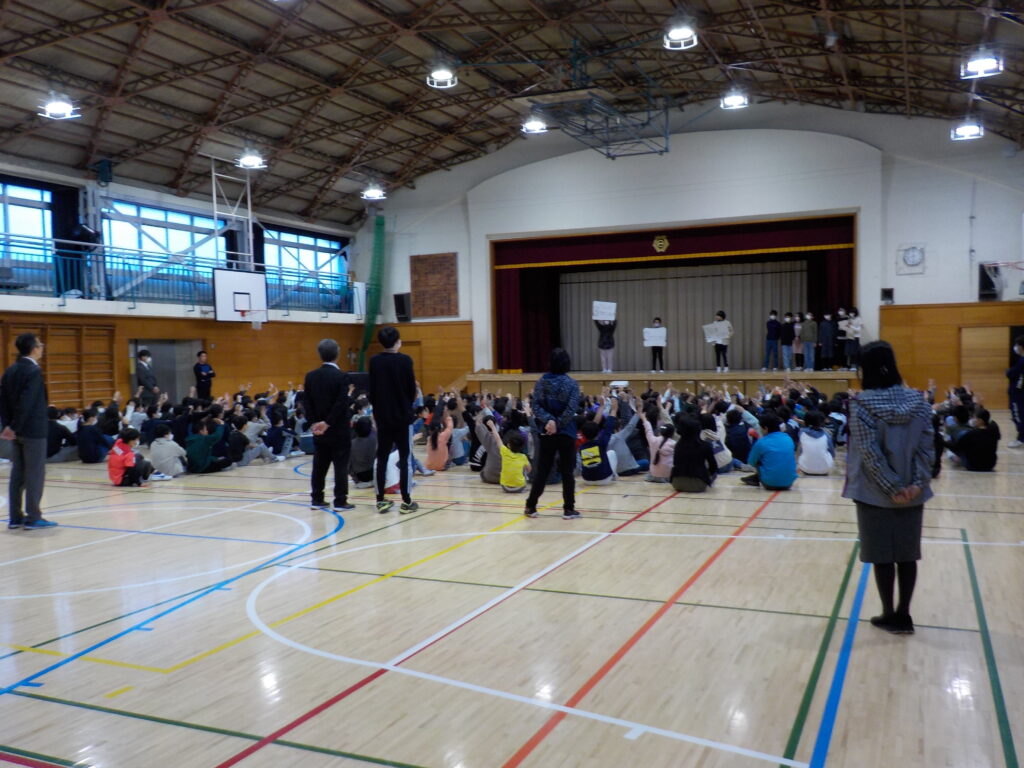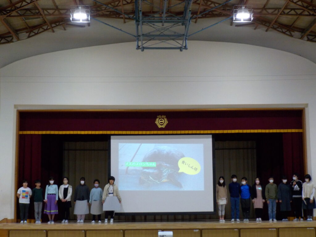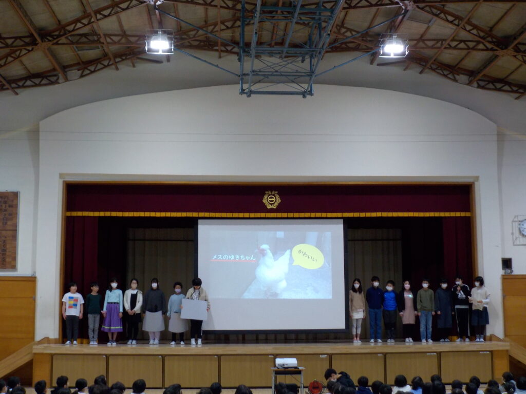 飼育委員会の委員会集会がありました 2023年12月6日 最終更新日時 : 2023年12月6日 寺岡 12月6日水曜日、飼育委員会の委員会集会がありました。飼育委員会がどんな仕事をしているかスライドで紹介し、また、亀やチャボについての3択クイズを出題して全校児童を楽しませました。