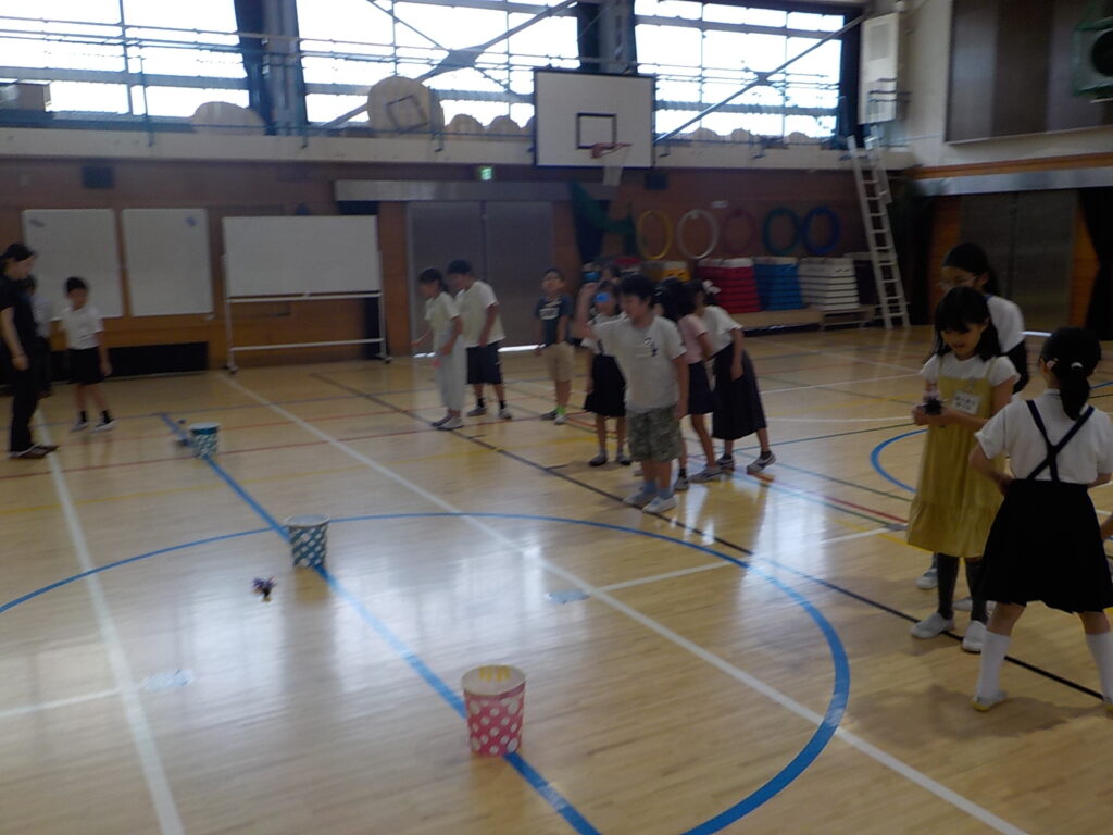 朝鮮の伝統的な遊びの「ペンイ」(こま)と「トゥホ」(やりなげ)を、第九小の皆さんが教えてくれました。