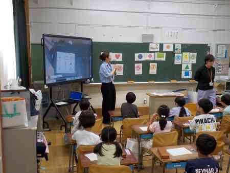 たのしい外国語活動 2025年9月25日 最終更新日時 : 2025年9月25日 小島 杉一小では低学年も外国語活動を年間5時間行っています。 授業では、ALTの方とも一緒に学びます。 ゲームを通して楽しく英語を学んでいます。 今日はビンゴゲームを使って数字や形の勉強をしていました。