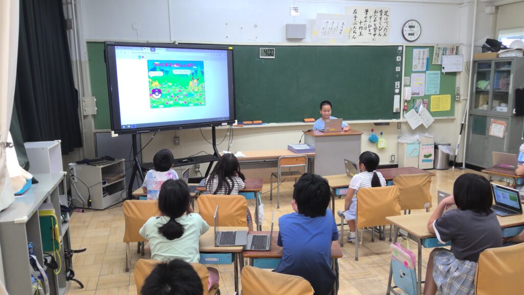 3年生 プログラミング 2025年9月29日 最終更新日時 : 2025年9月29日 祐子鄭 福田先生にお越し頂き、楽しくプログラミングを教えていただきました。最初は難しさを感じていましたが、少しずつ上手にキャラクターを動かしたり、背景を変えたり、それぞれ個性豊かなストーリーを作ることが出来ました。