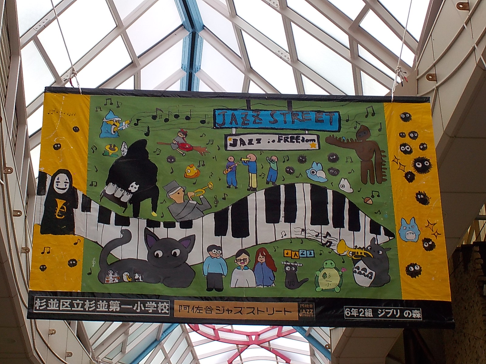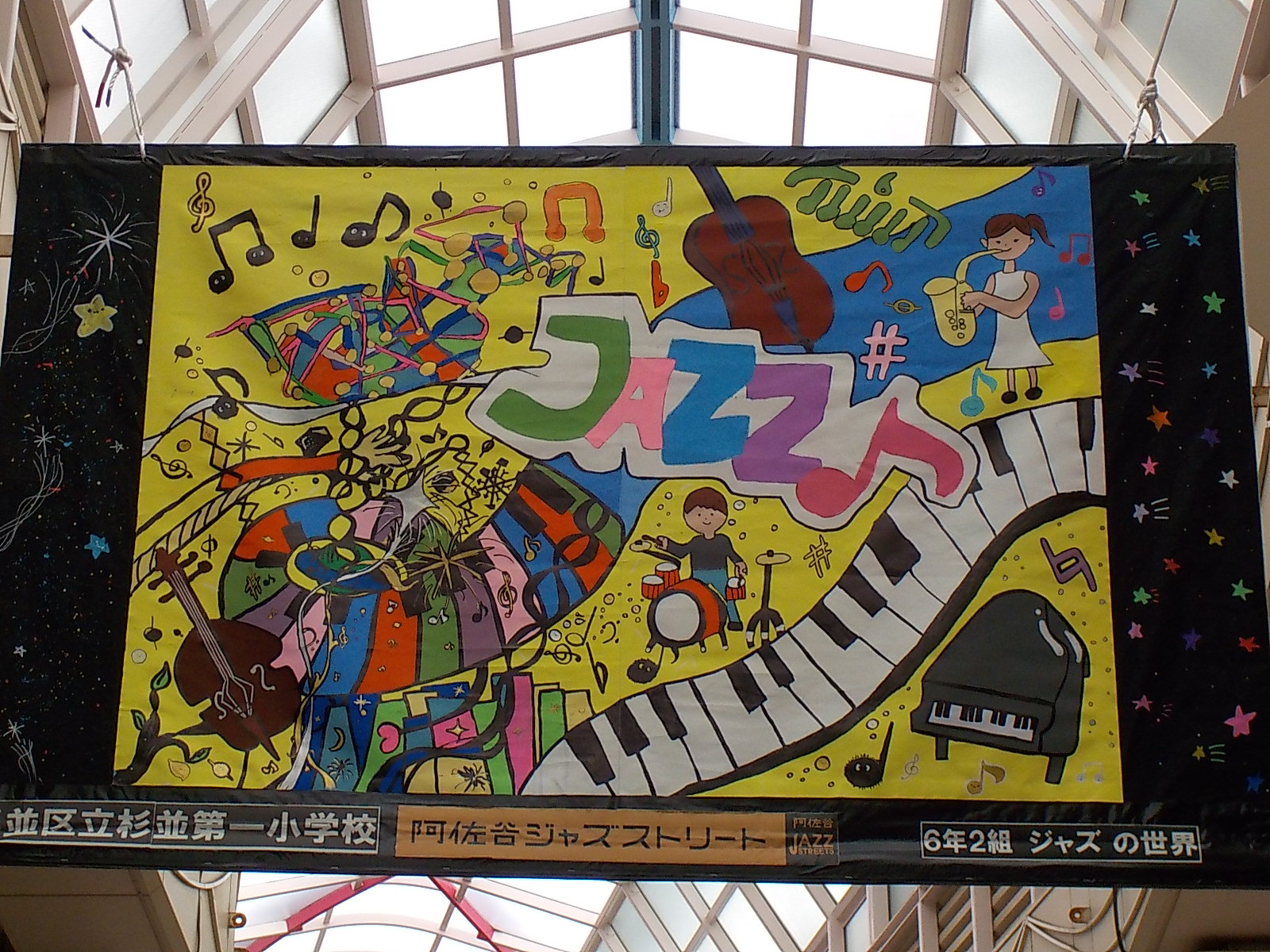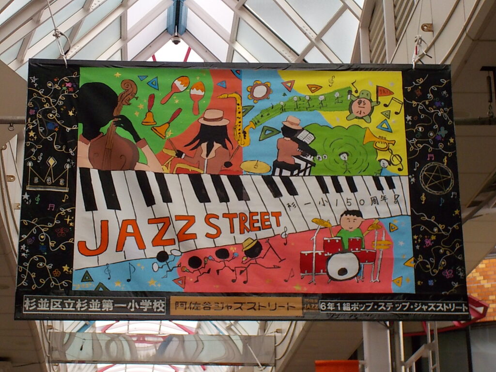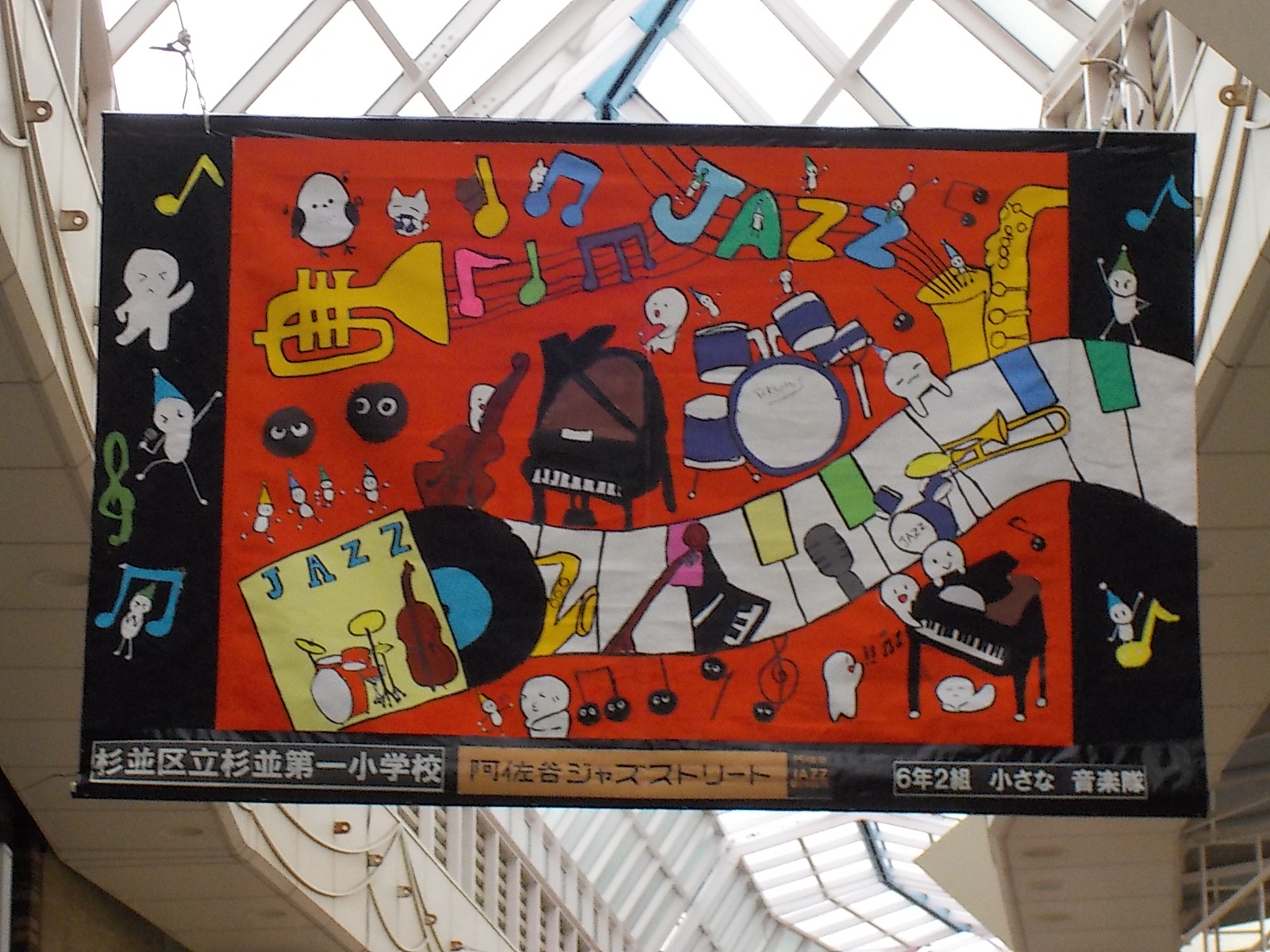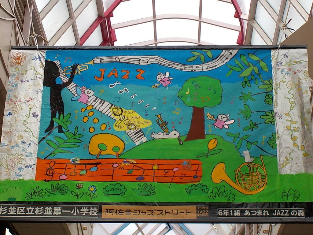 ジャズアートに共同制作を出展しています 2025年10月23日 最終更新日時 : 2025年10月23日 小島 阿佐谷のジャズストリートに杉一小6年生が共同制作を出展しています。 パールセンター内に飾ってありますのでご覧ください。
