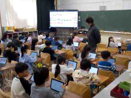 本日、1年生は音楽づくりのプログラミング学習を行いました。