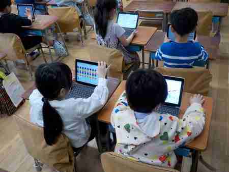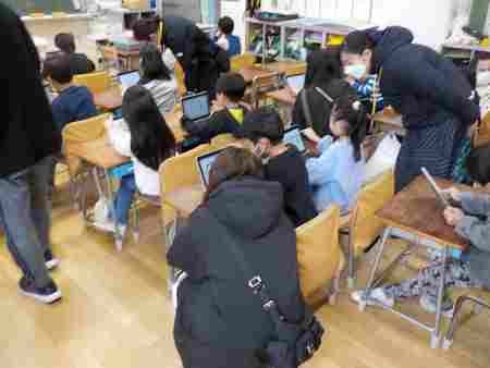 一人一台専用タブレットにも慣れ、どんどん使いこなしている1年生。