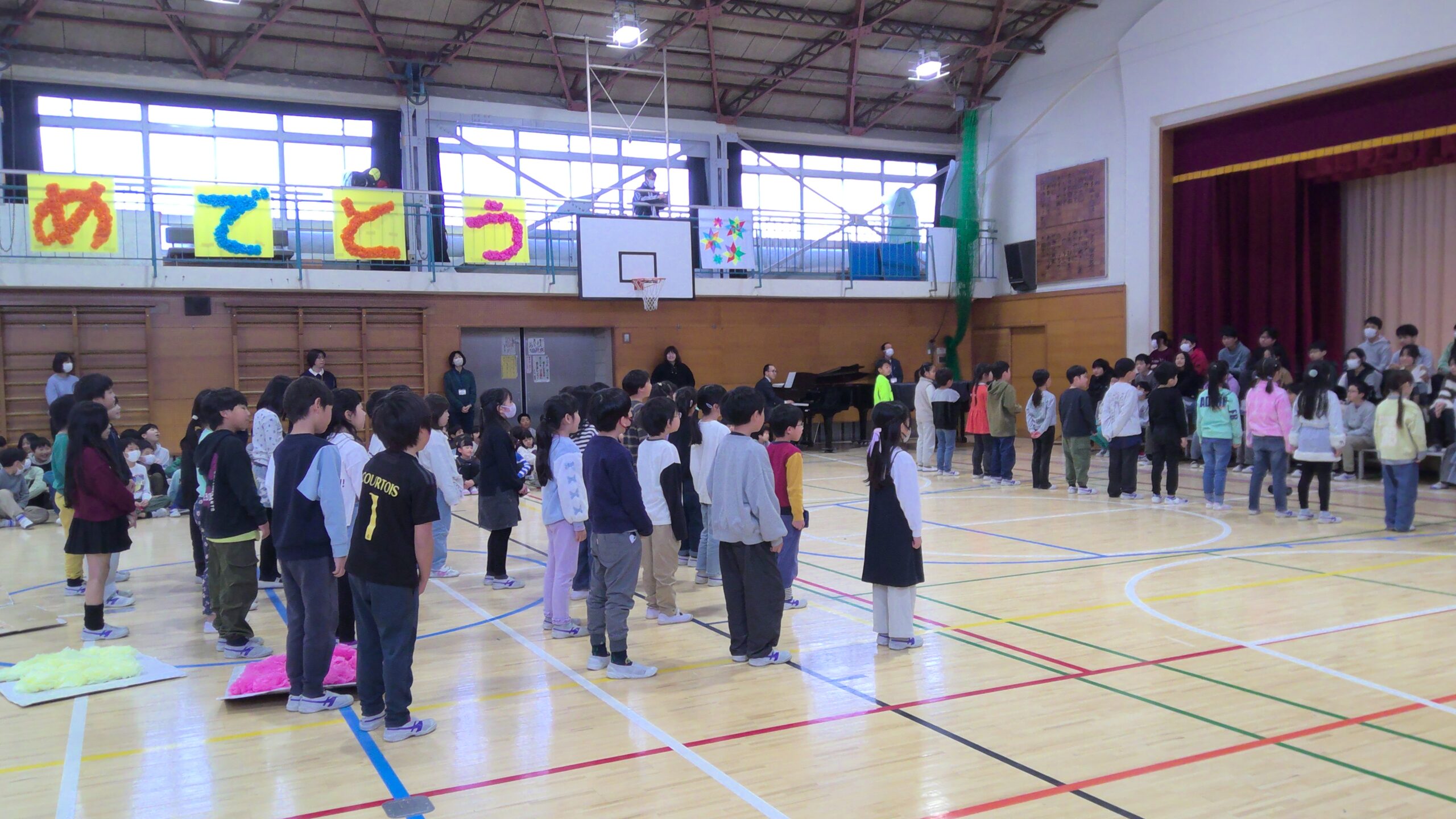 2年 6年生を送る会 2026年3月10日 最終更新日時 : 2026年3月10日 将行畠中 3月10日(火)に6年生を送る会を行いました。2年生は呼びかけとダンス「タッタ」、合唱「ありがとうの花」を贈りました。本番は「緊張した。」と言っていましたが、元気いっぱいに6年生へのエールと感謝の言葉を伝えました。