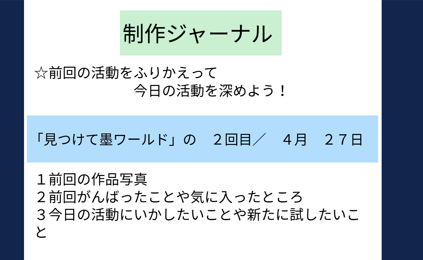 【図工室から】の一回目の題材は、6年生の「見つけよう!墨ワールド」です。