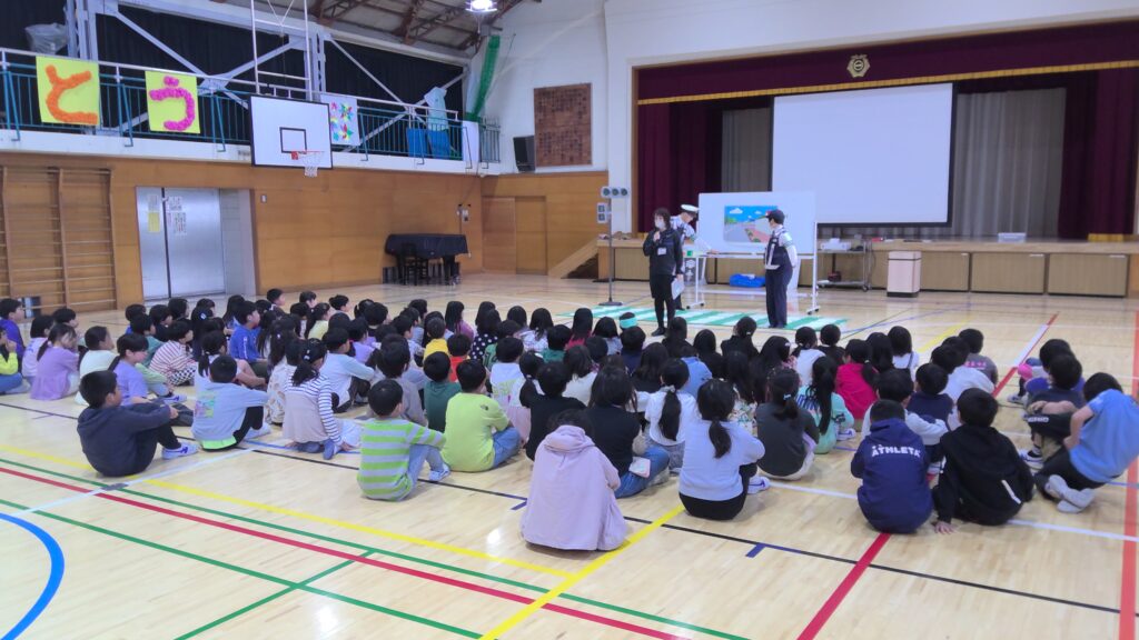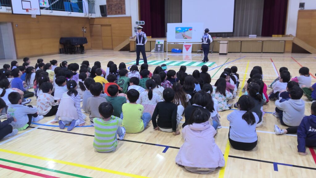 3年 交通安全教室 2026年4月20日 最終更新日時 : 2026年4月17日 将行畠中 4月17日(金)に2年生と合同で交通安全教室を行いました。現役の警察官の方に、交通ルールや道を歩く時の安全確認、ドライバーの死角になるところは通らないなど、様々なことを教えていただきました。学んだことを大切に日々の指導にも生かしていきます。保護者の方々のご協力もどうぞお願い致します。