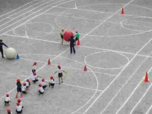 校庭に出ての初練習です。自分の立ち位置から確認します。体育館とは、広さも違うので最初は少し戸惑う様子も見られました。さあ、来週の本番へ向けて、もう一段ギアを上げていきます!