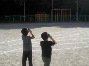 本日の朝、3年生が校庭に元気よく出てきました。 理科の学習で太陽の観察をしていました。遮光版を使ってじっくり太陽を観察していました。 もう一つ面白いことを行っていました。 国語の学習「ちいちゃんのかげおくり」の中 […]
