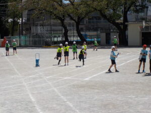 最高のお天気の中、3年生はベースボール型ゲームのラケットベースを学習しています。 テニスラケットをバットとして思い切りかっ飛ばしていました。 ボールが柔らかいためフェンスオーバーは難しいようですが、みんなで盛り上が […]