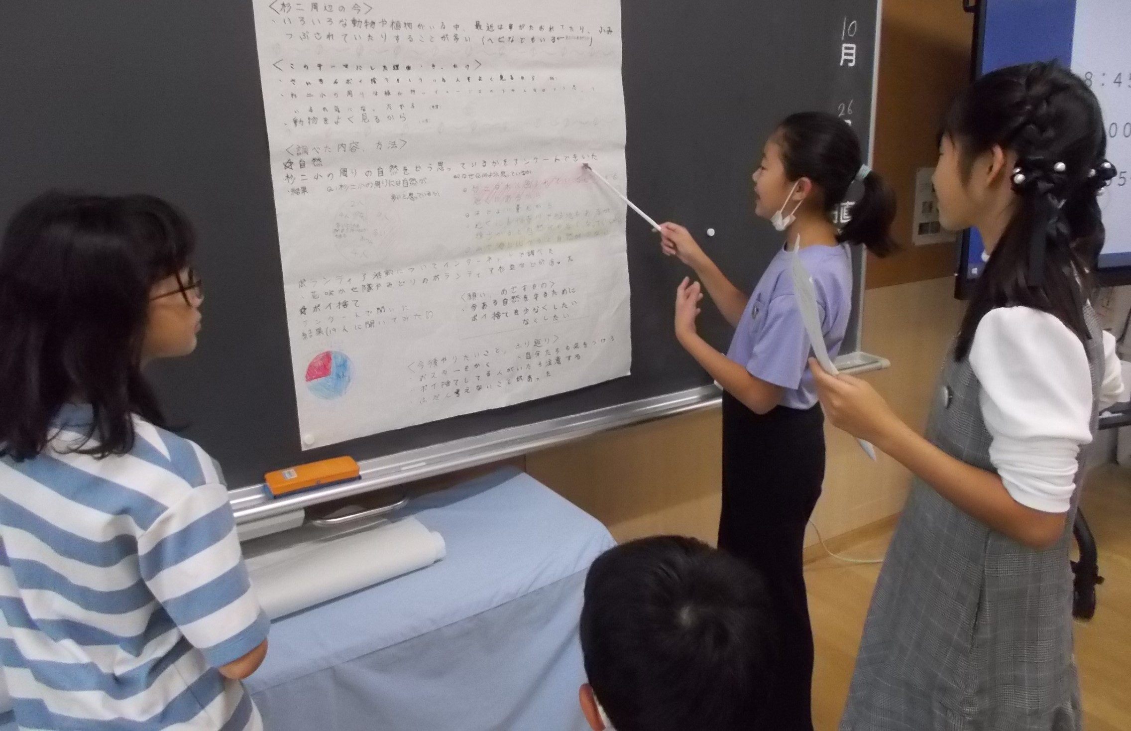 6年生もそれ以外の学年の子供たちも、毎日のようにグループごとの移動教室レポートを楽しそうに眺め、談笑しています。