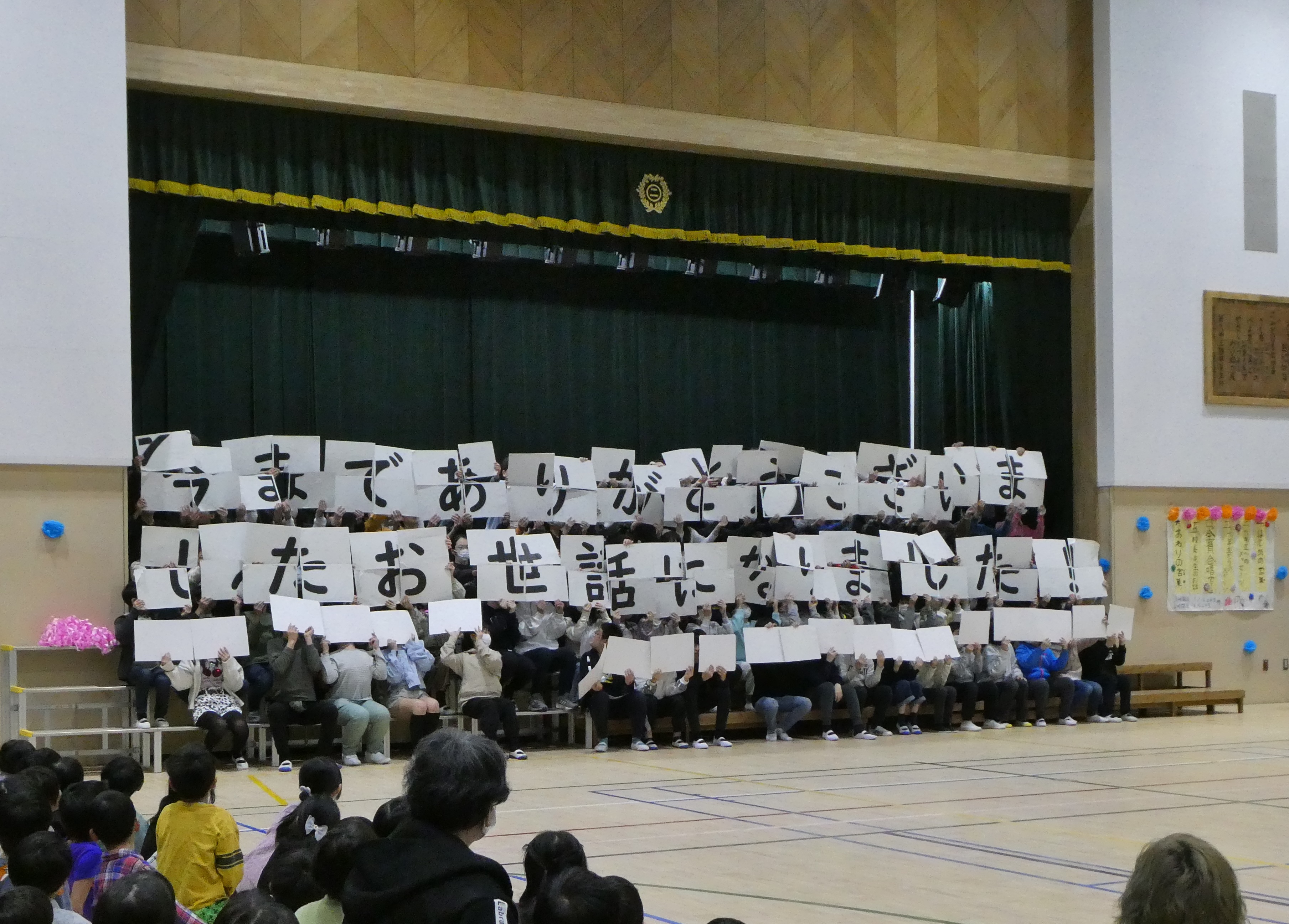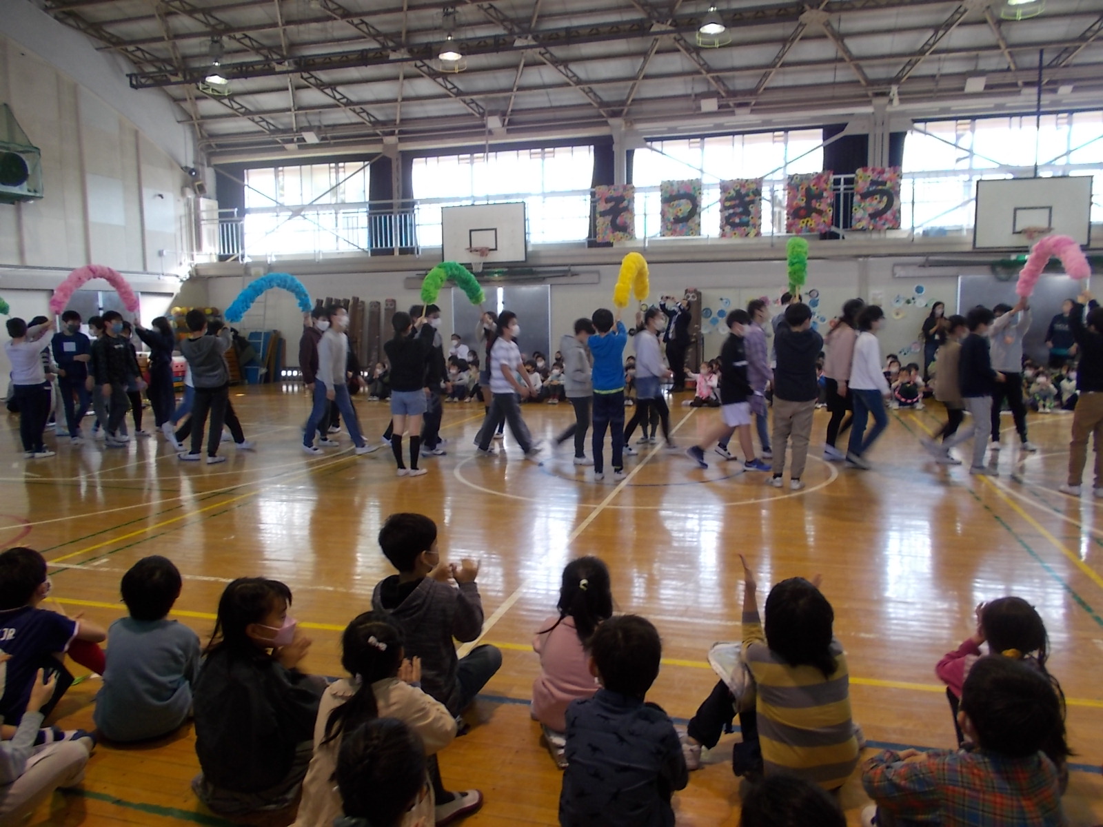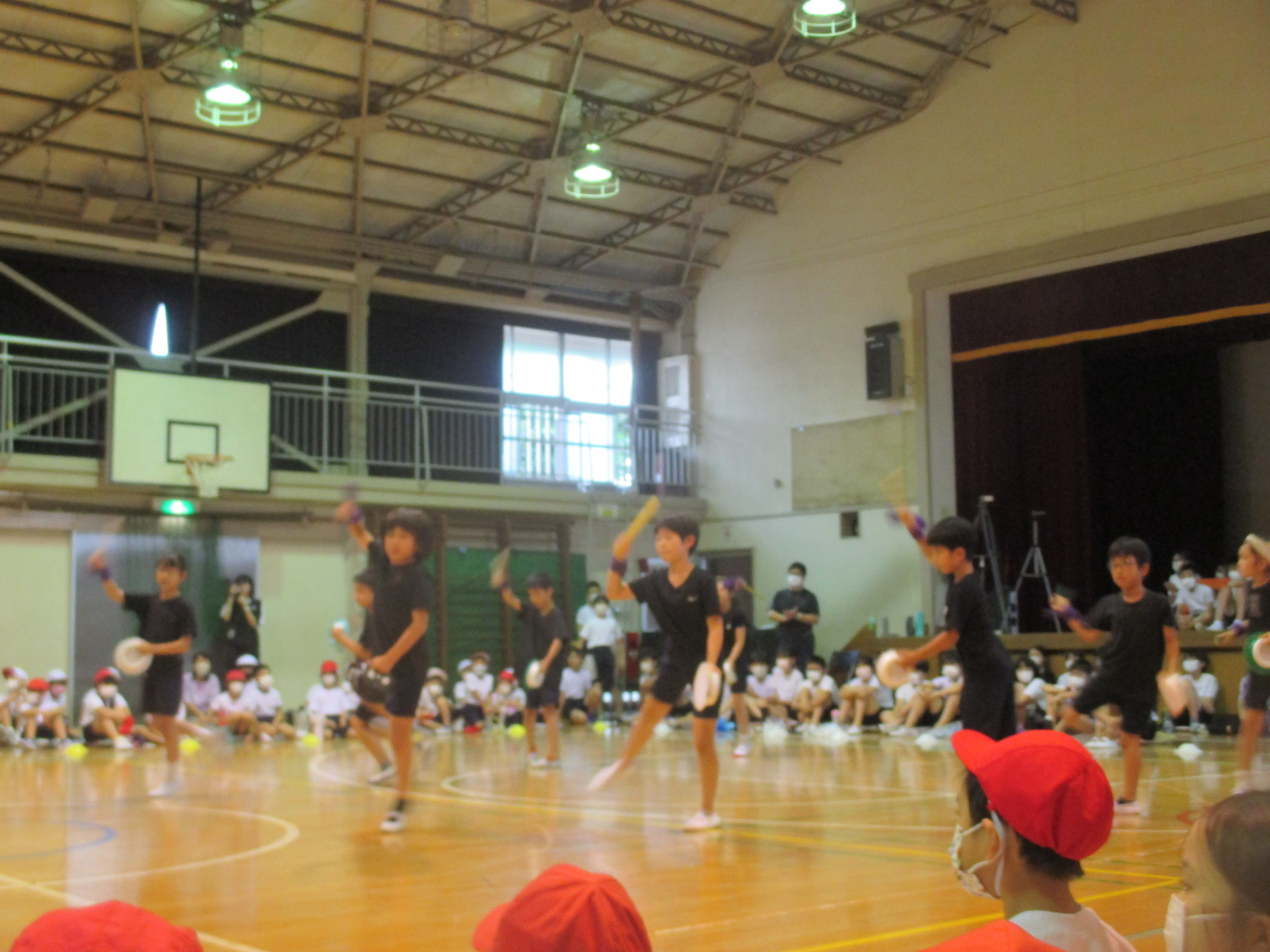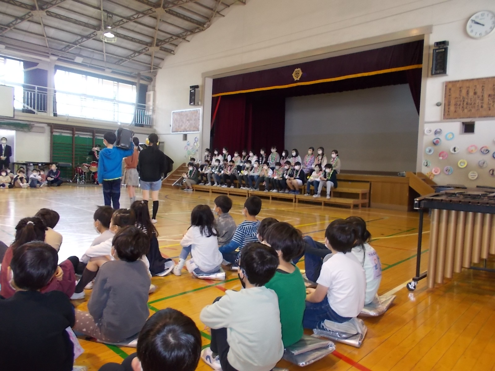 1・2年生にとっては、他学年の子供たちと集まって催し物をすることそのものが初めてです。そのことも手伝ってか、「6年生を送る会」は終始大きな盛り上がりを見せていました。