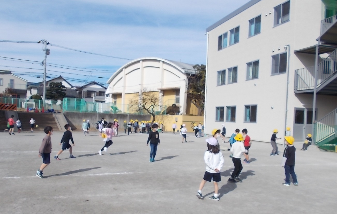 本校では、新校舎改築工事のため、校庭が1月いっぱいでほぼ使用できなくなります。1月が終わりに近づくに連れ、子供たちが互いに誘い合って校庭で遊ぶ姿を多く見かけるようになりました。