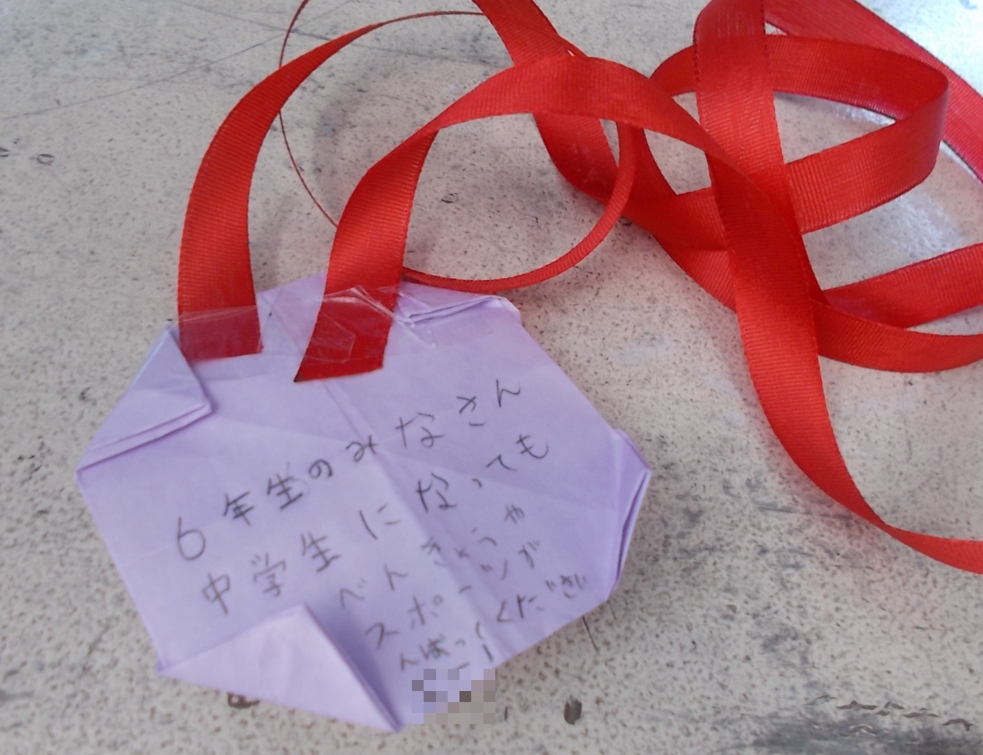 真心を込めて作ったプレゼントをもらった6年生の子供たちの、とても嬉しそうな顔をしている様子がとても印象的でした。