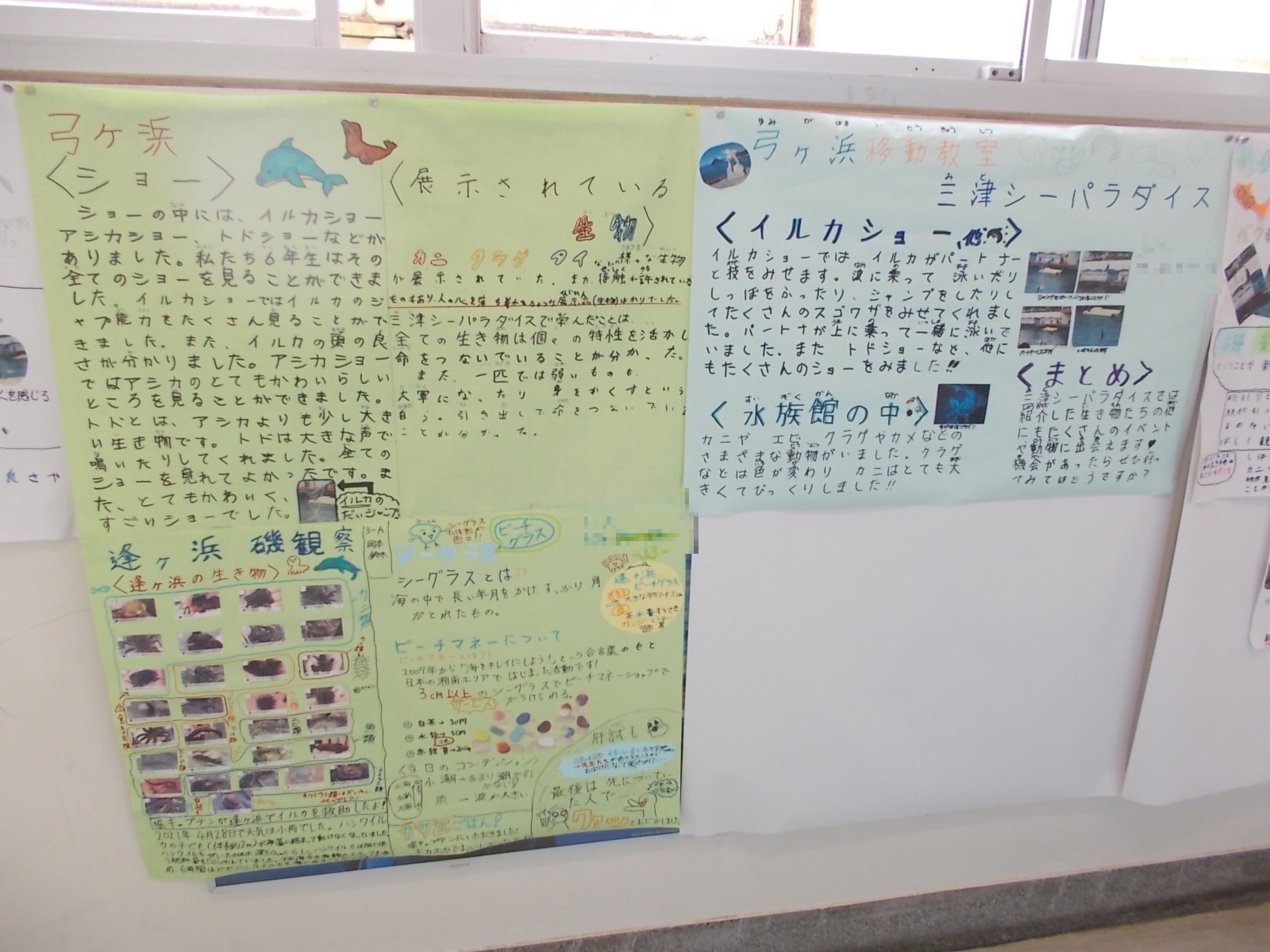 6年生は移動教室で学んだことや思い出を、グループごとに模造紙にレポートとしてまとめました。