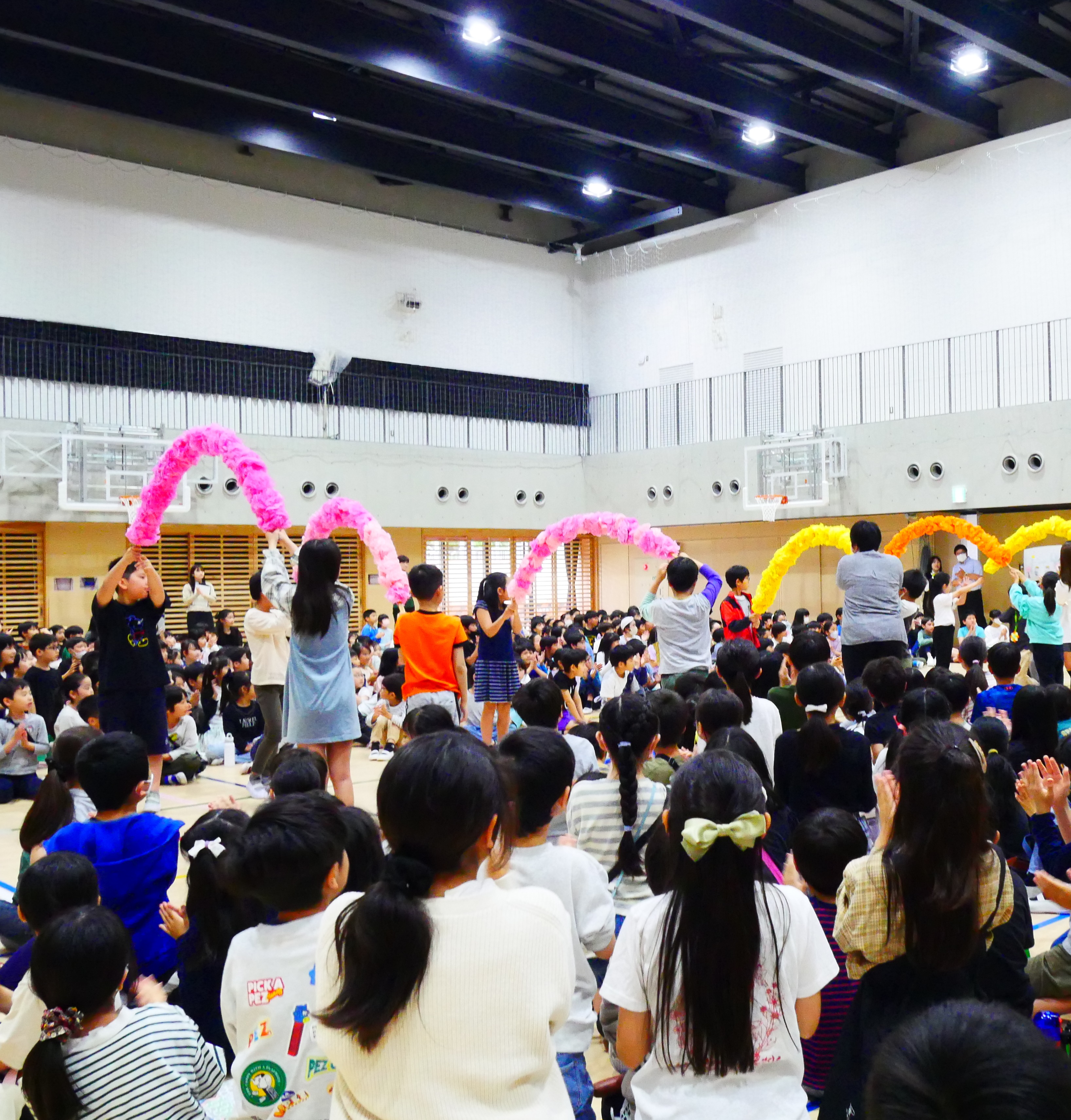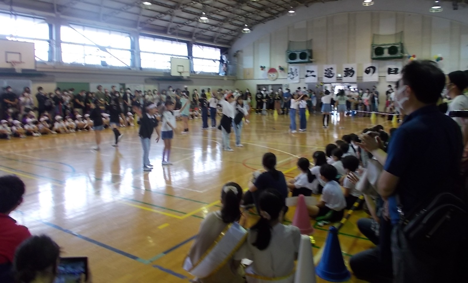 各クラスの子供たちが見守る中、6年生からはエールおよびダンスのプレゼントが、来年度を引き継ぐ5年生から6年生へエールが贈られるなど、大盛り上がりのうちに「送る会」が進められました。
