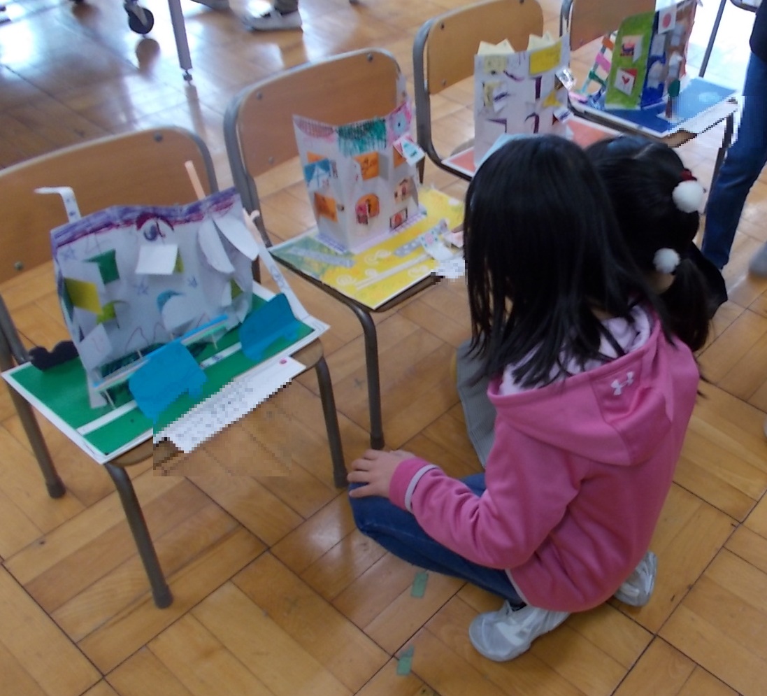 児童鑑賞会では、6年生が作成した大きな作品に息をのむ場面が見られたり、「こういう動物がいたら素敵!」「こんな船に乗ってみたい!」「わたしもこういう作品を作ってみたい!」などの声が聞かれたりして、鑑賞会を楽しんでいるようでした。