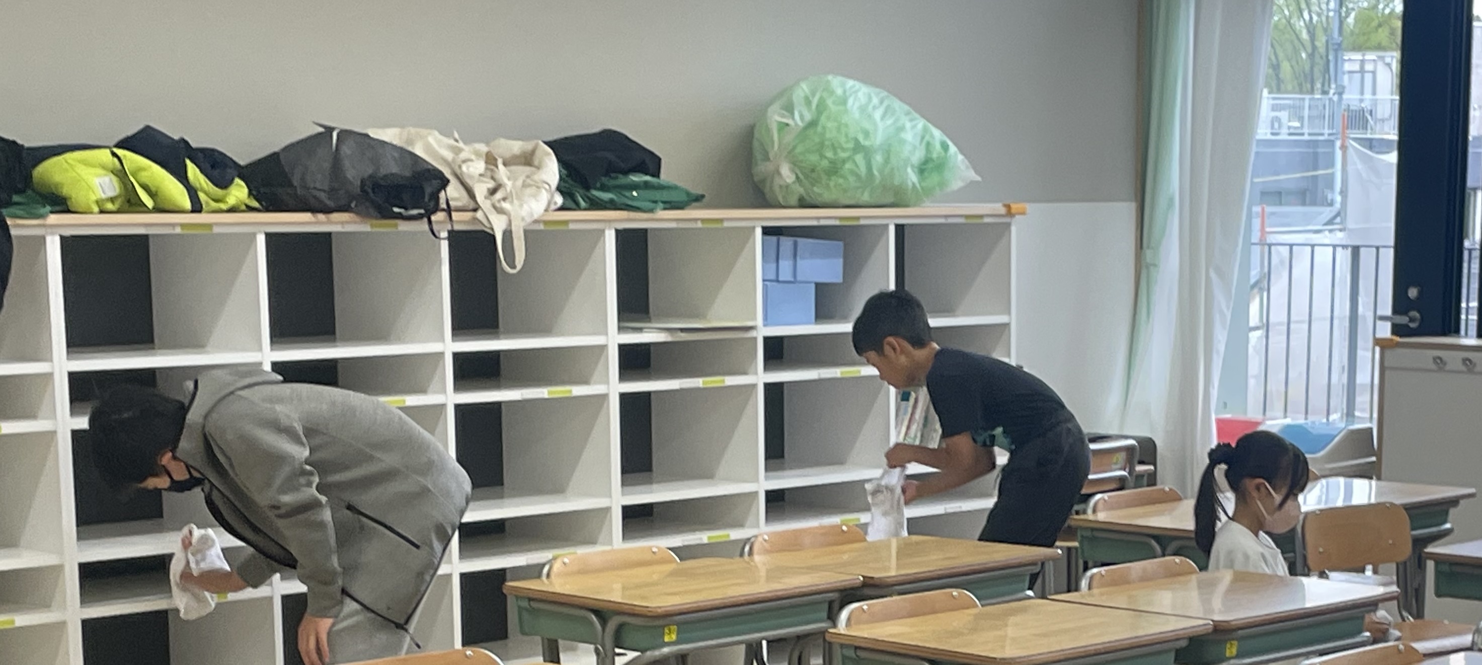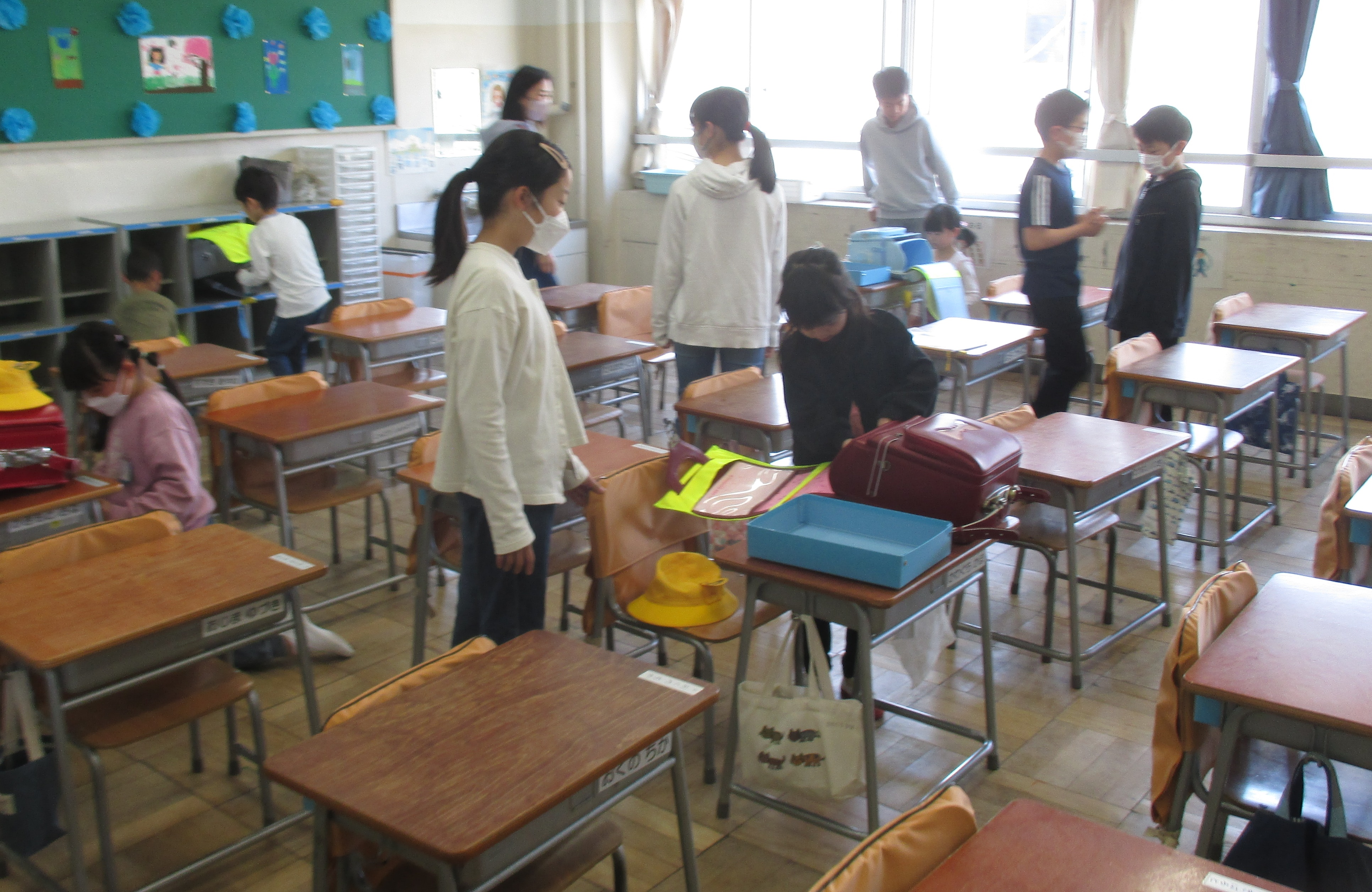 4月5日(水)は春休み最終日。この日は新6年生が登校し、新1年生を迎える準備を行いました。