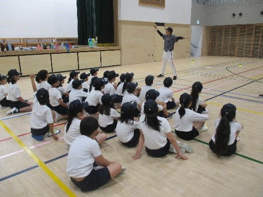 ボールの投げ方やゲームの進め方を学び、チームに分かれて試合を行いました。プロの指導の下、どの子もたくさん体を動かし、楽しく取り組むことができました。