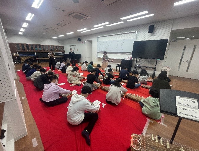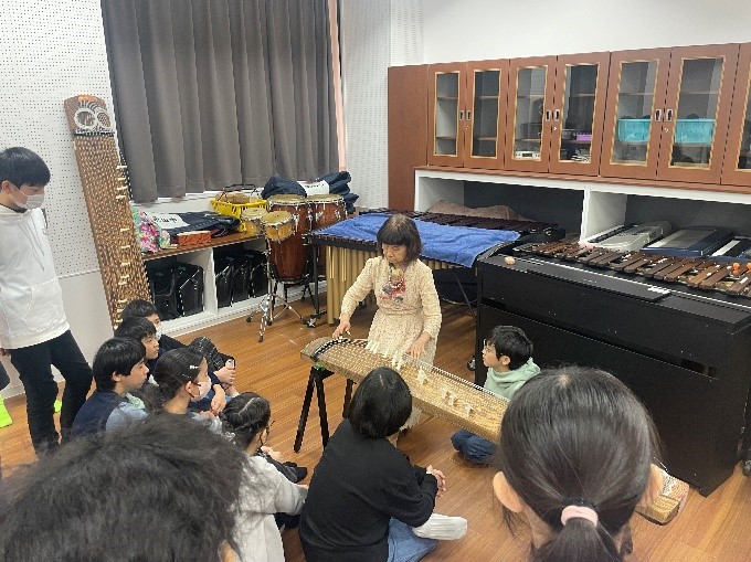 りました。講師の先生にお手本の演奏をしていただき、日本の楽器の良さを感じ取ることもできる時間となり