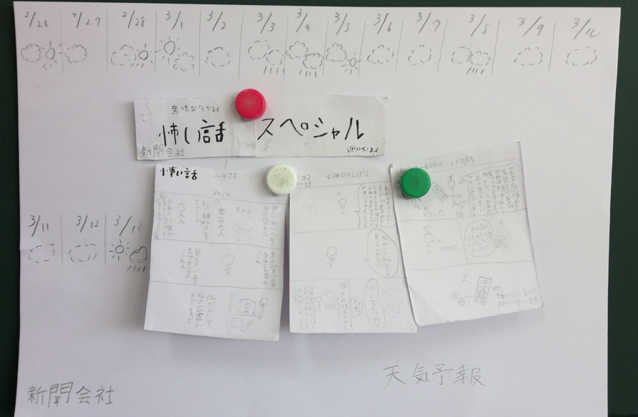 活動内容も会社によって様々です。私は、新聞会社に入っており、新聞を作ってクラスのみんなに届けています。その他のの会社も、クラスのみんなをを楽しませるために工夫を重ねています。