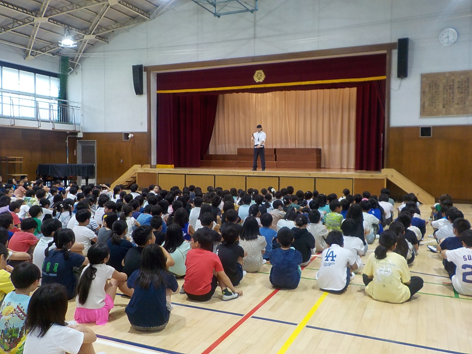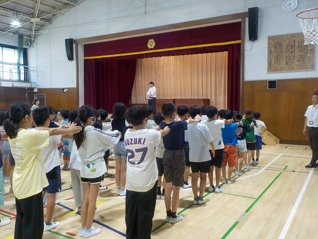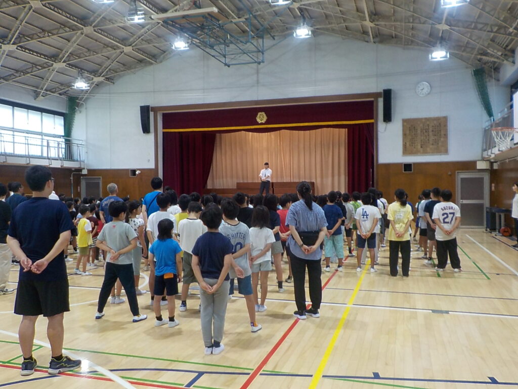 全校児童にかかわる重要な連絡や話は、みんなで集まって聞くことを基本としています。話を聞く姿勢や態度についても、改めて確認しました。