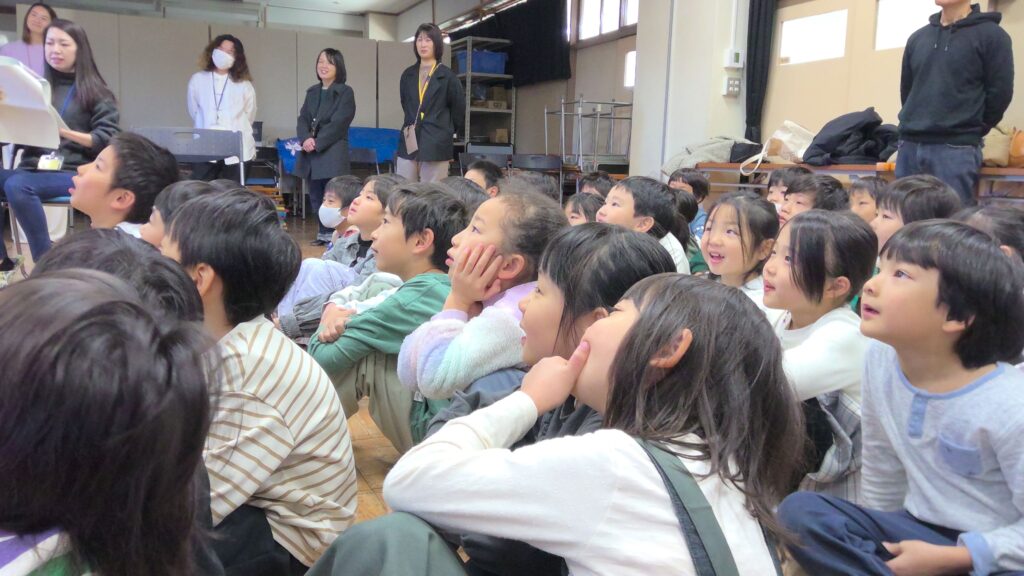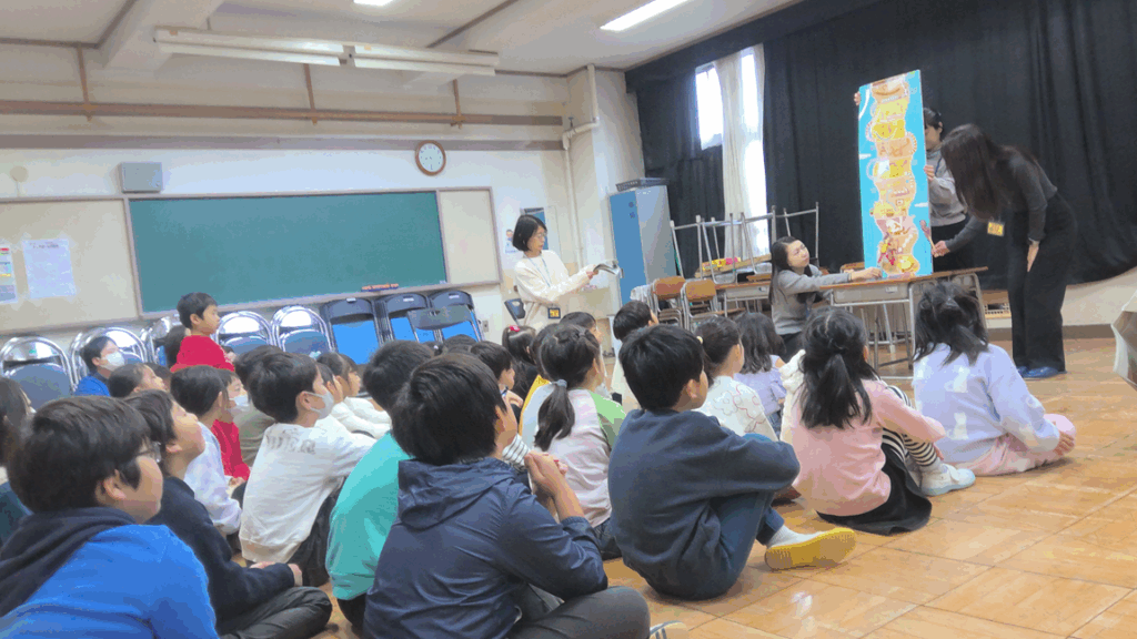子どもたちは、ペープサートの人形が動く様子を目で追いながら絵本の世界に引き込まれ、きらきらした笑顔で聞き入っていました。読み聞かせの後には、実際にペープサートに触れたり動かしたりして、最後まで絵本の世界を満喫しました。