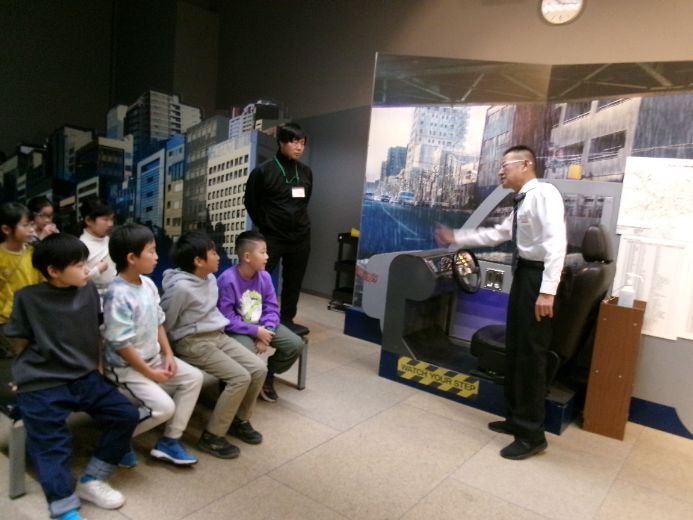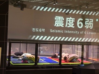 バスに乗って始めに向かったのは、本所防災館。ここでは地震や都市型水害、暴風雨の体験に加え、火事を想定した煙体験も行いました。実際に体験することで、災害時にどう行動すべきかを学ぶことができました。