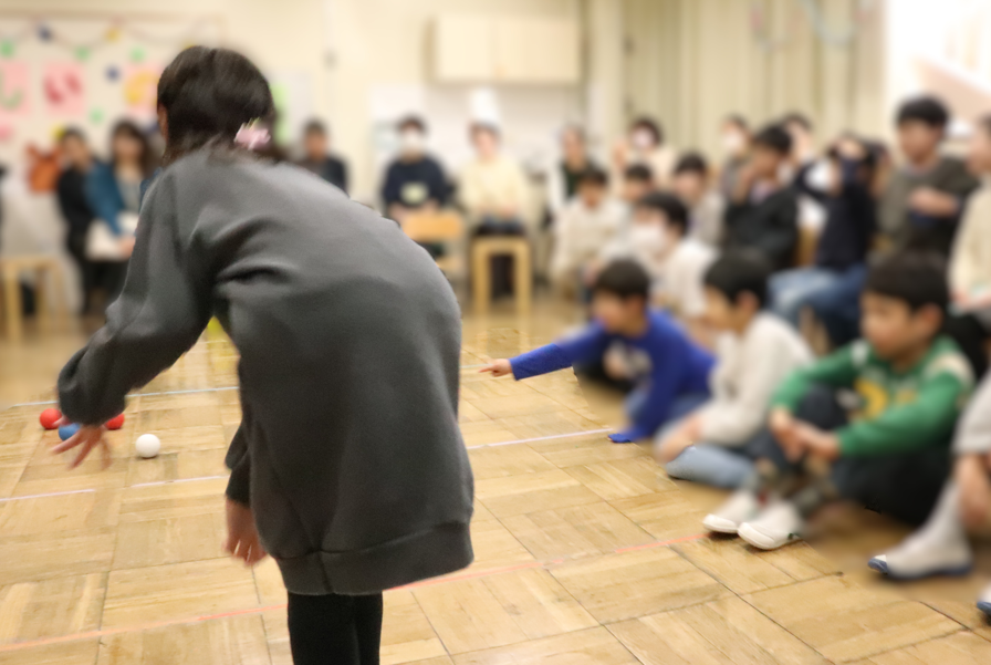 プログラムの内容について学級会で話し合ったところ、みんなで楽しめる「ボッチャ」を行うことになりました。司会やはじめの言葉・終わりの言葉だけでなく、「おめでとう」の雰囲気を高めるための工夫も、子どもたち自身が積極的に出しました。