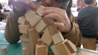3年生は、図工の時間に初めてノコギリを学び、角材を切るところから立体作品づくりに取り組みました。ギコギコと木を切る音や...