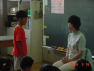 視覚に障害があると買い物はどうするのか、信号の青はわかるのかなど、2年生が知りたいことを質問しました。 |