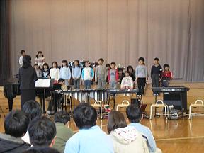 今年は、各学年一回ずつ音楽の授業で取り組んでいる曲を、集会で発表しています。