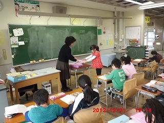 通知表をもらう児童も渡す教員も、「通知表」の重さを実感しながらの