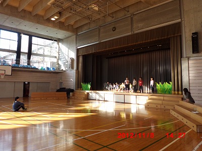2年生は体育館ステージを使って、