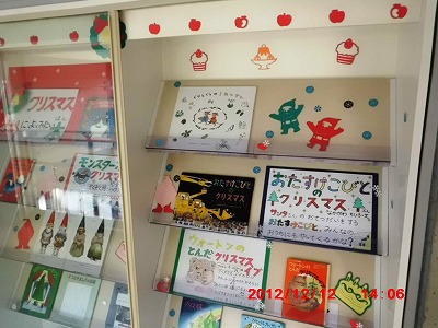 図書館入口の掲示棚は現在クリスマスver.に変身、
