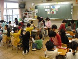 1年生は、園児たちのミニ先生となって、ひらがなを教えたり、紙で工作したりしました。