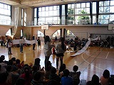6年生が6年間で学んだ漢字を巻物として体育館いっぱいに広げました。学んだ漢字の量に驚いていました。