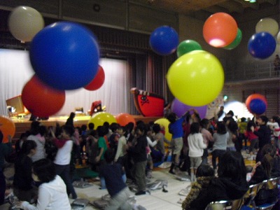 高円寺北子供園の催し、米村でんじろうサイエンスプロダクションのみなさんによる「サイエンスショー」に、