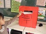 さて、いよいよ本番!子どもたちは、ポストにはがきが入っているかわくわくしながらポストに向かいます。