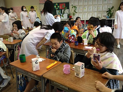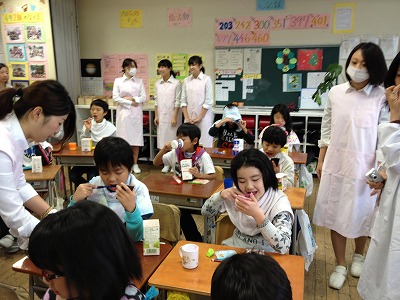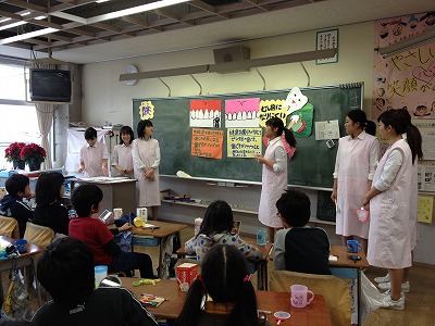 歯科衛生士の専門学校の方々が来て、ご指導してくれました。