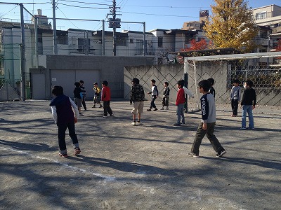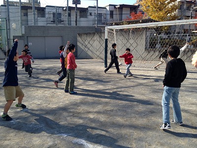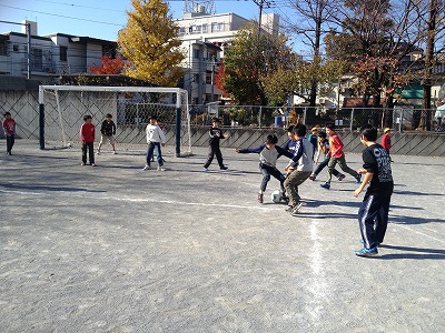 いつもは、5・6年生と一緒に使っているサッカーゴールも