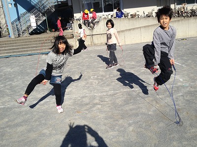 縄跳びをしている子もたくさんいます。