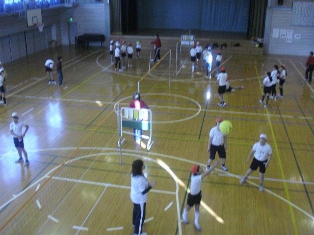 ゲストティーチャーを迎えて、ソフトバレーボールの学習をしました。公式ルールを学び、ゲームをしました。