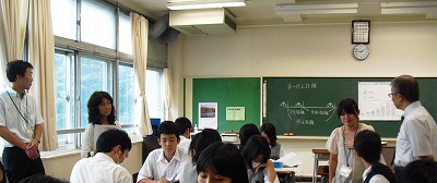 杉四、杉八、高中の教員が一堂に集まり中学の授業を参観し、