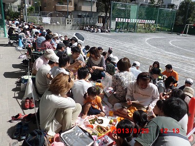 昼食は家族揃ってお弁当、おいしそうなお弁当をみんな楽しく食べていました。